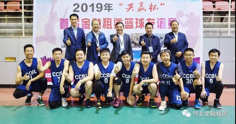 ▲河北金租總裁王永生(后排左三)、建信金租副總裁徐大公(后排左二)、中鐵金控租賃公司副總經(jīng)理周光明(后排右二)、河北金租副總裁李永德(后排左一)、河北金租工會(huì)主席石拴江(后排右一)等與建信金租籃球隊(duì)。