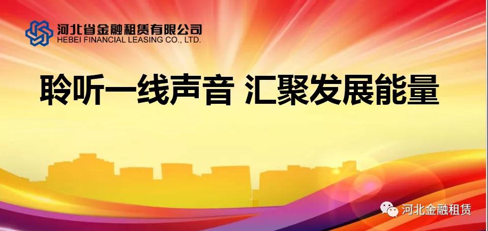 日前,河北省金融租賃有限公司(以下簡(jiǎn)稱(chēng)“河北金租”或“公司”)在武漢舉行員工座談會(huì),公司董事長(zhǎng)徐敏俊、副總裁李永德等與醫(yī)療健康、工程裝備等業(yè)務(wù)團(tuán)隊(duì)負(fù)責(zé)人和一線業(yè)務(wù)經(jīng)理共同座談,在持續(xù)三個(gè)多小時(shí)的時(shí)間里,業(yè)務(wù)經(jīng)理們踴躍發(fā)聲,實(shí)事求是提建議,獻(xiàn)計(jì)獻(xiàn)策謀發(fā)展,互動(dòng)交流解疑惑,在面對(duì)面的互動(dòng)中搭建了心與心交流的橋梁。
