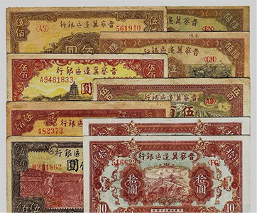 晉察冀抗日根據(jù)地,是中國(guó)共產(chǎn)黨在抗日戰(zhàn)爭(zhēng)時(shí)期于敵后開(kāi)創(chuàng)的第一個(gè)抗日根據(jù)地。晉察冀邊區(qū)政府于1938年2月成立晉察冀邊區(qū)銀行,在山西五臺(tái)縣石咀鄉(xiāng)的普濟(jì)寺內(nèi)開(kāi)始營(yíng)業(yè)。邊區(qū)銀行的貨幣發(fā)行后,清除了地方發(fā)行的各種鈔票,統(tǒng)一了邊區(qū)的貨幣市場(chǎng),支持了抗日戰(zhàn)爭(zhēng),支持了生產(chǎn),改善了人民生活,深受抗日根據(jù)地軍民的歡迎。晉察冀邊區(qū)票當(dāng)時(shí)在山西、河北、察哈爾省、熱河省以及遼寧西部、內(nèi)蒙古、山東德州地區(qū)等敵后抗日根據(jù)地流通,流通人口達(dá)3000多萬(wàn)人。直到1948年晉察冀邊區(qū)銀行與冀南銀行合并,成立華北銀行,晉察冀邊區(qū)票才停止流通使用。