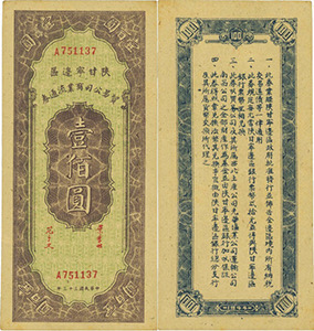 抗日戰(zhàn)爭(zhēng)爆發(fā)后,1937年9月下旬,八路軍第一二零師進(jìn)入晉西北地區(qū),創(chuàng)立了晉西北抗日根據(jù)地,建立了興縣農(nóng)民銀行。到1938年12月,開(kāi)辟了以大青山為依托的綏西、綏南、綏中三塊游擊根據(jù)地,并逐步同晉西北根據(jù)地連成一片,構(gòu)成晉綏抗日根據(jù)地。1940年5月,以興縣農(nóng)民銀行為基礎(chǔ),成立了晉西北農(nóng)民銀行,后改為西北農(nóng)民銀行,發(fā)行西北農(nóng)民幣,流通于晉綏地區(qū)。后晉綏邊區(qū)與陜甘寧邊區(qū)統(tǒng)一為西北解放區(qū),該行與陜甘寧邊區(qū)銀行合并,統(tǒng)稱(chēng)西北農(nóng)民銀行,西農(nóng)幣成為整個(gè)西北解放區(qū)統(tǒng)一本位幣。從1940年5月-1948年11月,西北農(nóng)民銀行共發(fā)行貨幣15種面額,26種票樣,約3.8億張,合計(jì)約為6439億元。