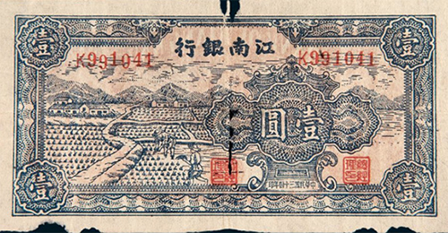 1941年5月,新組建的新四軍第七師正式成立,隨后,七師到安徽皖江地區(qū)開(kāi)辟了抗日根據(jù)地。為了阻止日偽利用法幣和偽幣掠奪資源,中共中央要求各根據(jù)地要建立獨(dú)立和統(tǒng)一的金融制度。皖中行署根據(jù)中共中央華中局第一次擴(kuò)大會(huì)議精神,于1943年6月,成立大江銀行,大江銀行先后發(fā)行大江幣7種面額、40種版別,約2000萬(wàn)元。