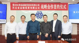 ▲河北金租董事長徐敏?。ㄗ笕貞c鈊渝金租總裁周驍(右三)等出席簽約儀式。日前,重慶鈊渝金融租賃股份有限公司(以下簡稱“重慶鈊渝金租”)總裁周驍來石拜訪河北省金融租賃有限公司(以下簡稱“河北金租”),公司董事長徐敏俊、副…